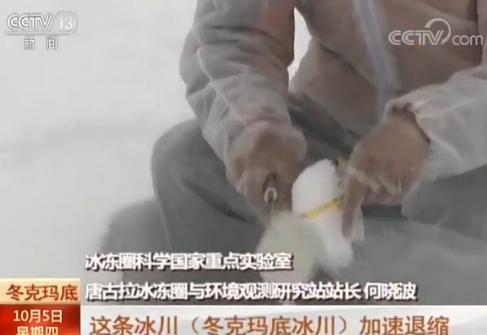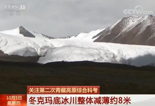 冰冻圈科学国家要点实验室 唐古拉冰冻圈与环境观测研讨站站长 何晓波:这30年来这条冰川(唐古拉山的冬克玛底冰川)加快畏缩,从16平方公里的冰川厚度减薄了约8米,咱们的科学数据说它的物质平衡是-7000毫米水当量,另外在我监测的13年以来,冰川加快畏缩200多米。